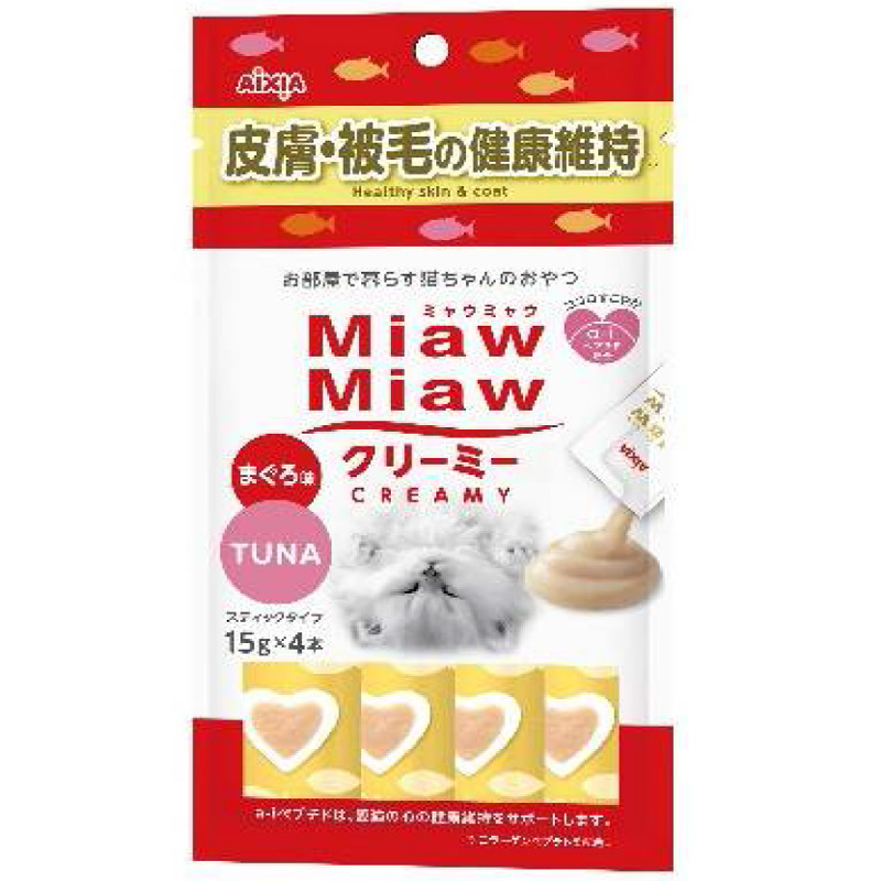 A totally new exciting pasty creamy TREAT for your purring kitties, one that will make you totally loved by them. Cats will love the taste of MIAW MIAW CREAMY & enjoy the benefits of a-I peptide which help in destressing & improving appetite. Added ingredients to improving your cats’ body functions – Healthy Uninary / Healthy Senior Care / Healthy Skin & Coat /Healthy Hip & Joint ! Your kitties will purr for more….PLEASANT MEMORY!