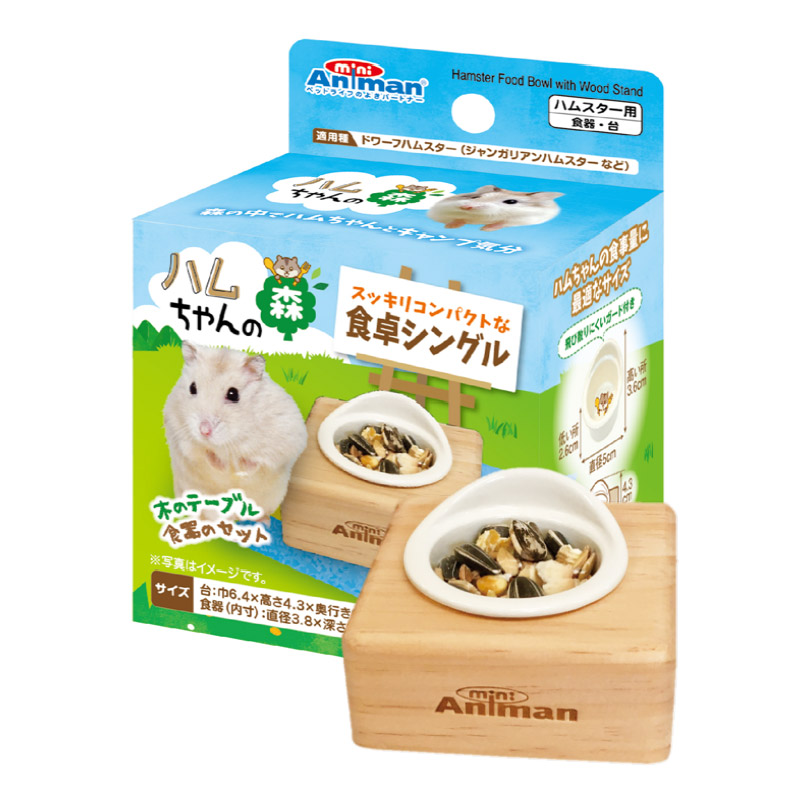 Hamster Food Bowl with Wood Stand – Single | Twin