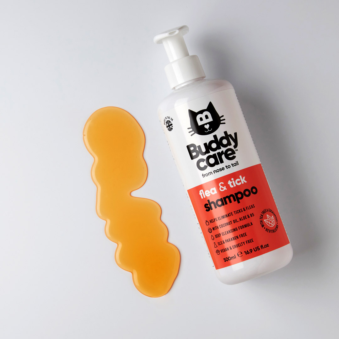Buddycare’s Flea & Tick Cat Shampoo is specially formulated to effectively get rid of any irritating and unwanted critters in your feline friend’s coat. And because its mild formulation contains tea tree, eucalyptus and coconut oils, it’s a natural remedy shampoo that provides revitalising relief from nose to tail. Our bug-busting formula will help kill and repel fleas and ticks, while its deep, natural cleansing action swiftly removes dirt and odour. We’ve used a gentle surfactant-based system, just like the ones found in baby products, to ensure a soothing and enjoyable experience for your pet. And guess what? Our shampoos are completely free from parabens, sulphate, SLS and SLES! While other brands may use SLS because it’s cheap, we know it can irritate the skin and cause itchiness. With Buddycare, you can rest assured that your pet’s skin will stay happy and itch-free.