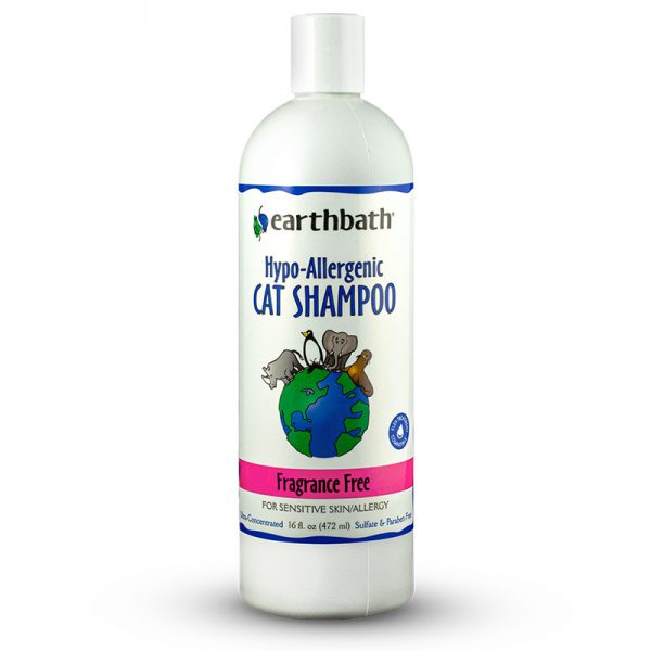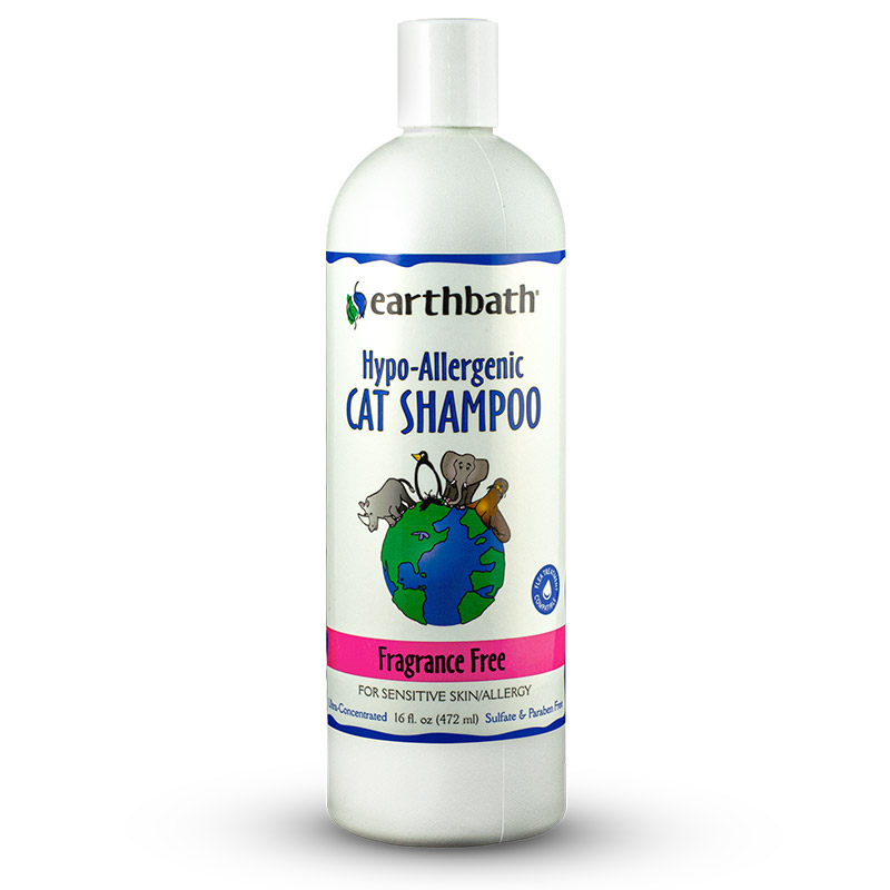 | Earthbath® formulated this fragrance free, hypo-allergenic shampoo especially for our finest furred feline friend who may have sensitive skin, allergies, or live in a multi-cat household (fragrance free makes for peace). This ultra-mild shampoo is pH-balanced to be exceptionally gentle for even the most sensitive of cats. Natural conditioners and aloe vera soften the coat, re-moisturize skin, and add manageability, brilliance and shine. Safe for all animals over 6 weeks old. Will not wash off topical flea applications.