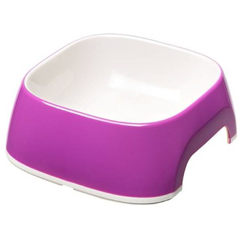 Bowl for dogs and cats made from bright coloured plastic, easy to clean thanks to the smooth surface. Suitable for water and food. Equipped with antislip rim for great stability. Available in different sizes and trendy colours.
