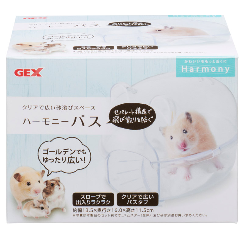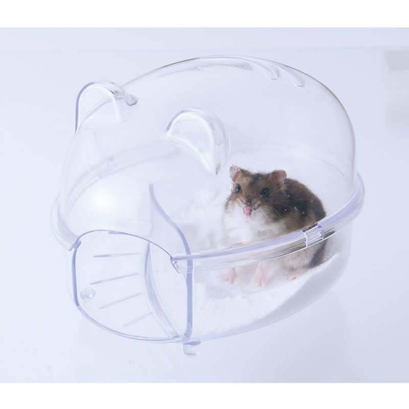 A clear and spacious sand bathing house. A bathtub for bathing in the sand. The separate structure from the bathtub prevents the scattering of sand. It’s easy to get in and out of even a golden hamster. Clear and wide bathtub makes it easy to see your hamster. Slope-shaped entrance so even a small size pet can enter without climbing.