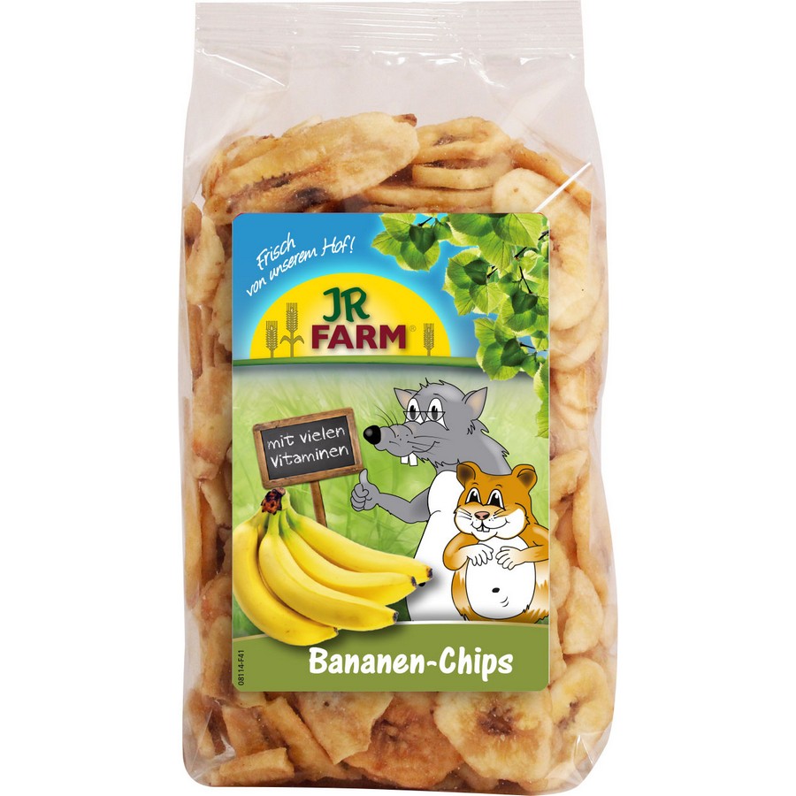 - JR FARM Banana-Slices are not only a tasty and crunchy tidbit, they also contain vital nutrients. Due to the manageable size of the banana chips they are ideally suited as rewards for learning, or tasty treats for in between meals. Feeding recommendation: according to the size of the animal up to 4 slices pure or mixed into main food per day.