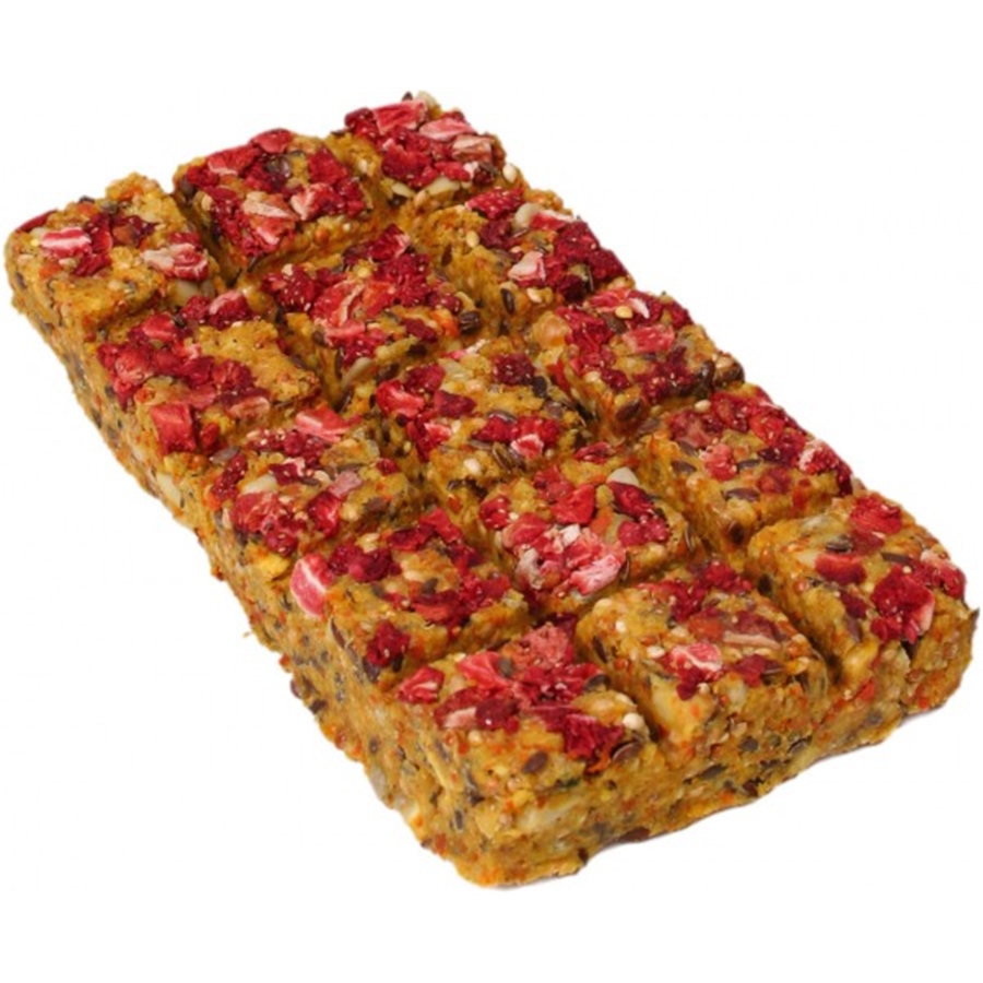 | Corn, wheat, carrots, linseed, La Plata millet, peanuts, rapeseed oil, manna millet, pea starch, sunflower seed, strawberries 1.3%; | Protein 9.7%, fat content 15.7%, crude fiber 5%, crude ash 1.9%, calcium 495 mg/kg, phosphorus 1704 mg/kg, sodium 306 mg/kg. |