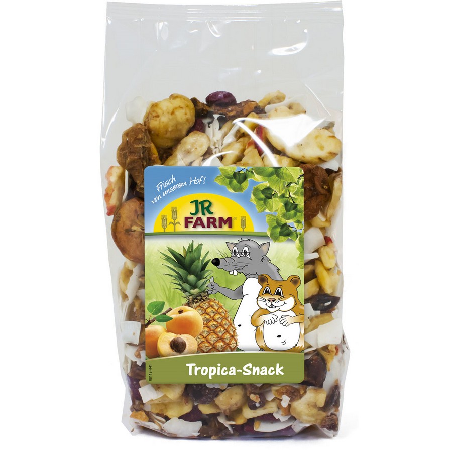 - JR FARM Tropic Snack is an exotic variation for the food bowl. Gentle drying means that apart from the natural aromas, also many important vitamins and minerals are retained. Simply delicious!
