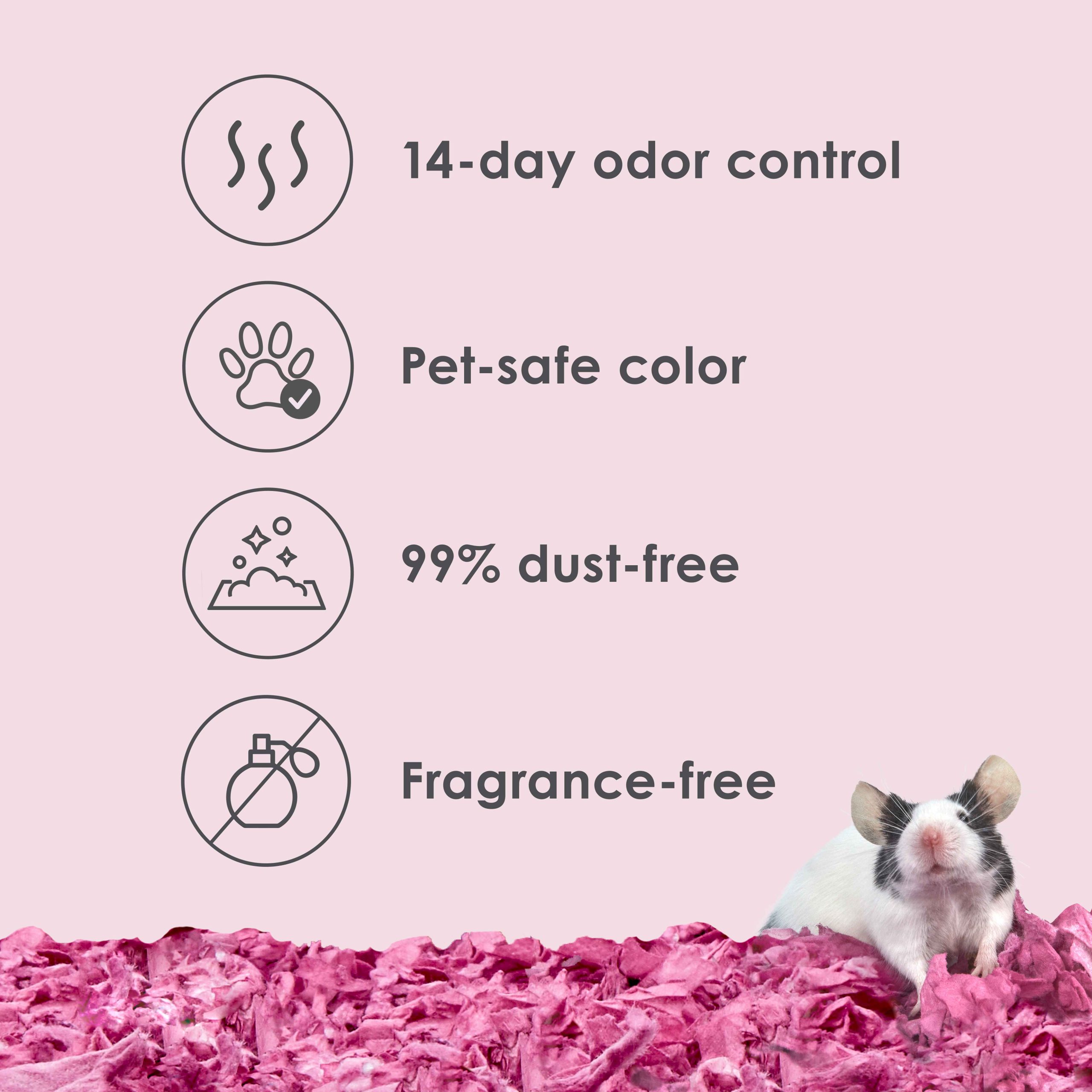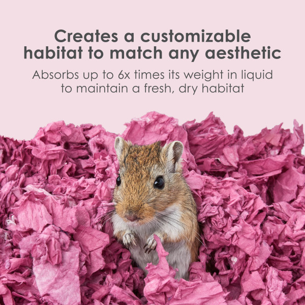 Kaytee combines fun, safe color with unbeatable performance, ensuring your pet lives in comfort and style. This bedding helps control ammonia odors for 14 days and is incredibly absorbent, absorbing up to 6x its weight in liquid to maintain a fresh, dry habitat. Pets and pet parents can breathe easy with our 99.9% dust-free, fragrance-free, and pet-safe bedding. Kaytee uses premium paper to provide the ultimate comfort since it is super soft and is free from harmful chemicals or by-products. With every step, your small animal will be cozy, clean, and fresh.