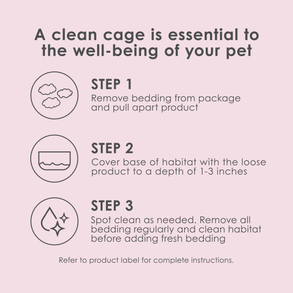 Cover base of habitat or enclosure with loose product to a depth of 1 to 3 inches. 14-DAY ODOR CONTROL neutralizes ammonia odor for long-lasting freshness. Kaytee Clean & Cozy Colors can be used with any type of habitat for a fresh animal home.