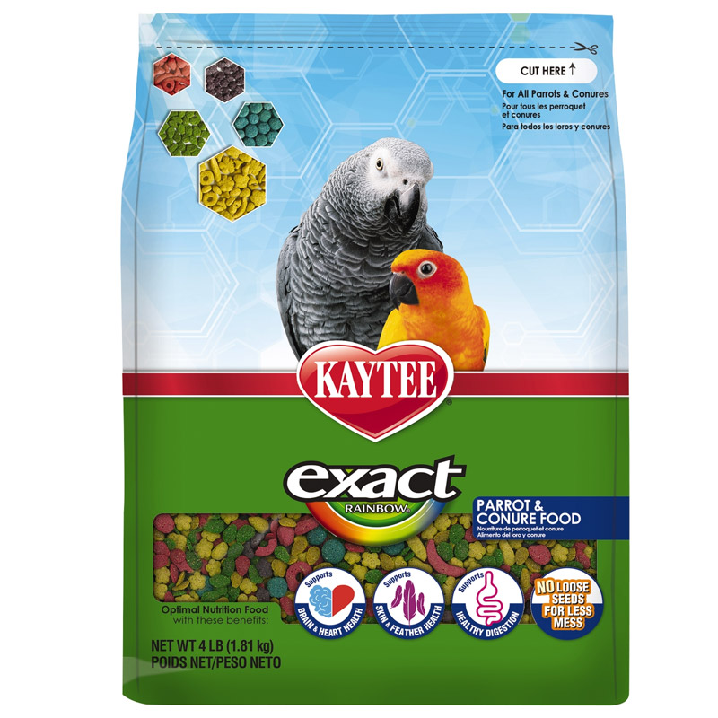 Kaytee Exact Rainbow Parrot and Conure food is a premium extruded food and has been the recognized nutritional leader by avian nutritionists, veterinarians and breeders since its introduction over 25 years ago. Each nugget contains “exact nutrition” ensuring your bird gets exactly the right nutrition to produce better feathering, brighter colors and maintain excellent health. exact Rainbow is 100% consumable with no seed hulls or shells for less mess.