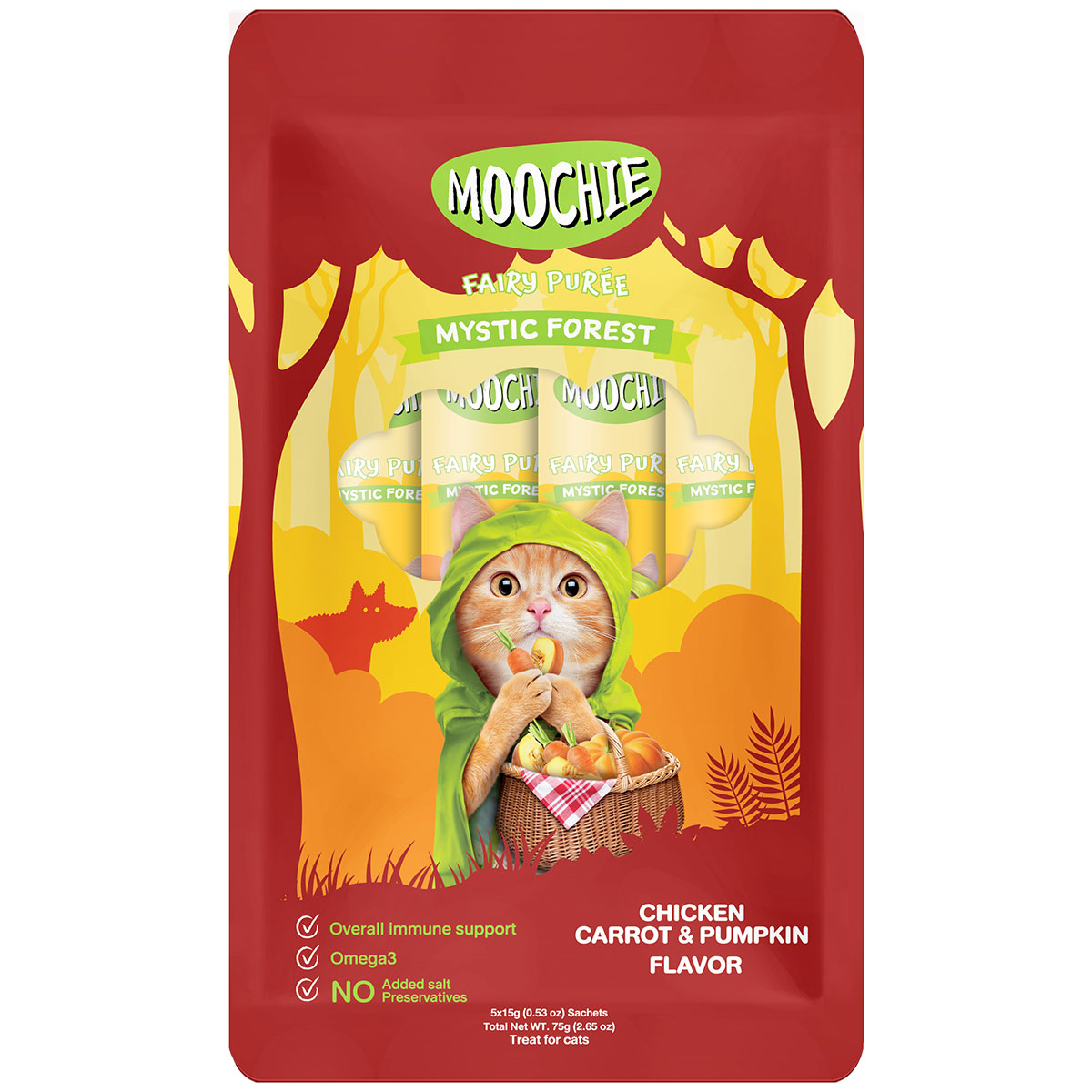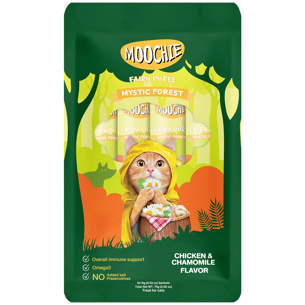 Experience fairytale-inspired Moochie creamy treats, undeniable lickable treats filled with tasty, creamy goodness for your beloved cat with velvet soft texture.