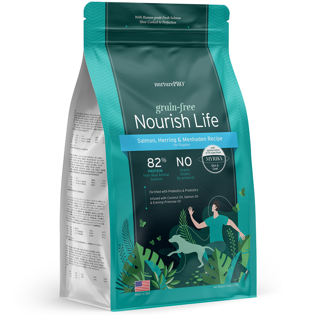 A growing puppy with lustrous skin and coat is not impossible with our grain-free Salmon, Herring, and Menhaden recipe. Contains an optimal blend of powerful nutrients and proteins that promotes shiny, full-bodied coats and healthy skin. It’s also enhanced with Spirulina, which boosts heart health and immunity. Ideal for dogs with gastrointestinal (GI) and skin sensitivities. Made with human-grade fresh salmon, slow-cooked to perfection.