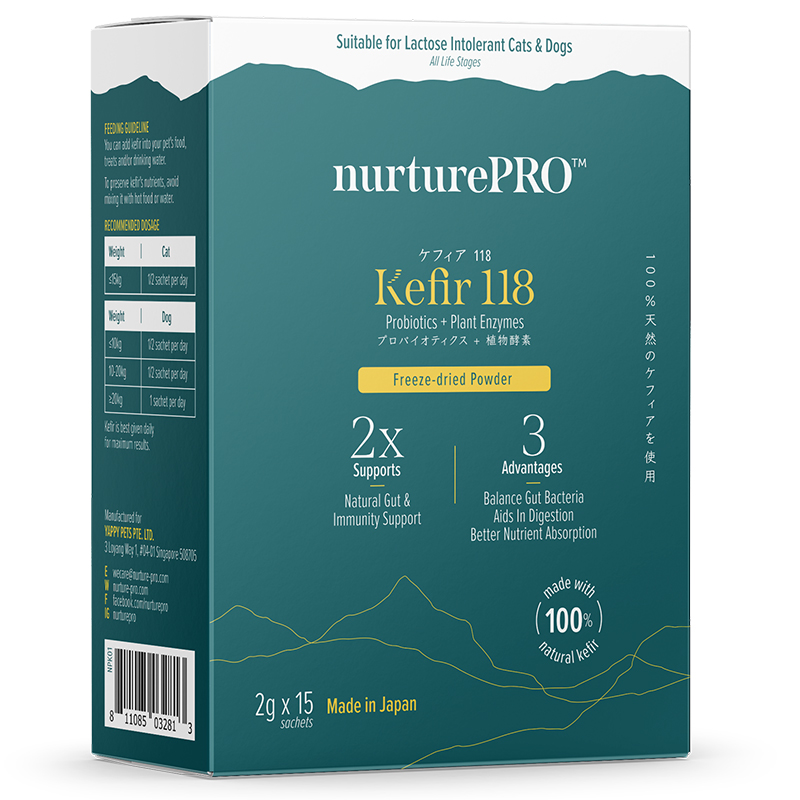 Kefir, a fermented probiotic milk cultured from kefir grains, is now available freeze-dried. nurturepro™ Kefir 118 is the world’s first freeze-dried kefir for pets. It’s packed with loads of live cultures beneficial to your pet’s gut health and overall wellness.
