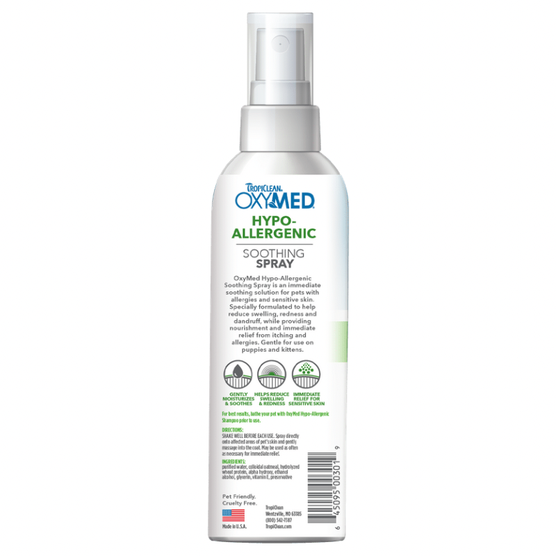 OxyMed Hypoallergenic Soothing Spray is an immediate soothing solution for pets with allergies and sensitive skin.