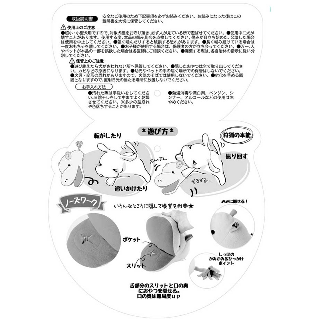 A toy with a place to hide that your dog will enjoy looking for. The degree of difficulty is increased because it can be put in the snack pocket immediately in the mouth of the bag and in the back of the throat! The ears are also small and cylindrical, so it can be used as a hidden pocket. It’s round, so you can roll it around, and it’s soft and gentle, so you can sleep with it as a pillow.