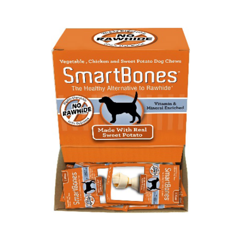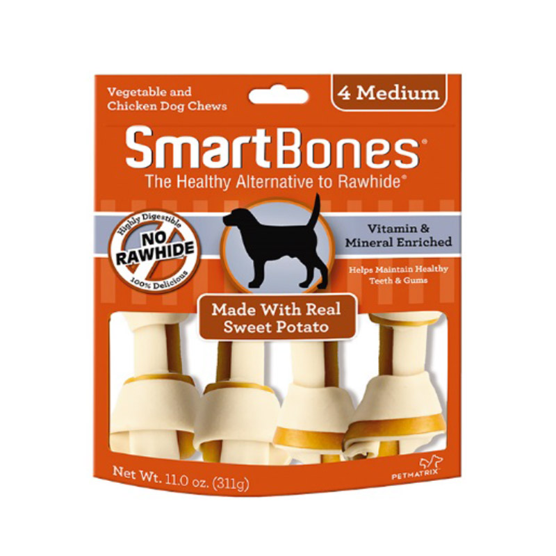 SmartBones are rawhide free and highly digestible – made with wholesome vegetables, real chicken, and enriched with vitamins & minerals! Chewing helps maintain healthy teeth.
