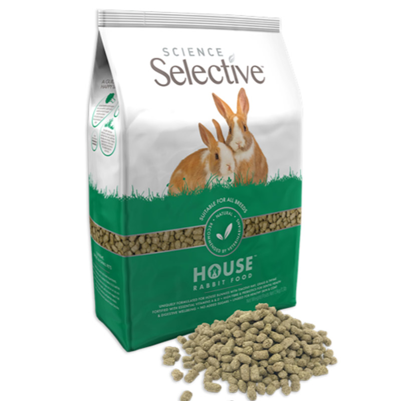 | Description | Science Selective House Rabbit has been uniquely formulated for house bunnies. With Timothy hay grass and thyme it provides an array of forage to reflect natural foraging behaviour. Fortified with essential vitamins A and D, 22% crude fibre and balanced calcium:phosphorus so you can be sure you are providing your rabbits with the finest quality nuggets that will help support wellbeing and promote vitality. That’s why vets recommend Supreme Science Selective.