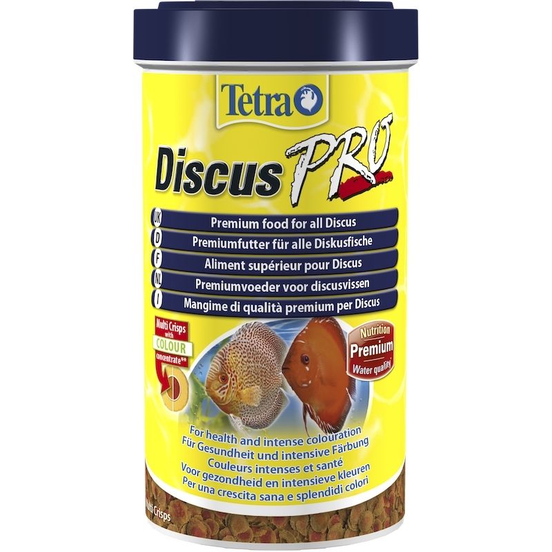 Premium food for all Discus. – Thanks to the low-heat production process Tetra Discus Multi Crisps are highly nutritious – The high content of natural colour enhancers and special ingredients ensure the full development of beautiful and rich colouring – Innovative Crisps format for minimal waste and water pollution – Patented Active formula* maintains a healthy immune system
