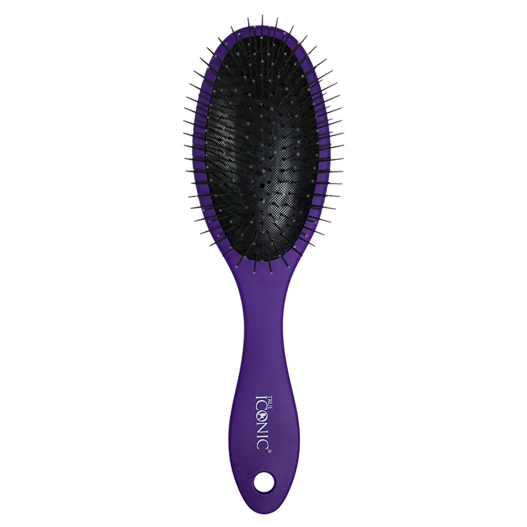 Efficiently detangles long, tangle-prone coats. Removes dead hair from undercoat and topcoats. Fluffs and beautifies the coat. Ideal for medium and large breeds. Special patented pin pad design prevents pin from indenting. Round end stainless steel pins avoid scratching.