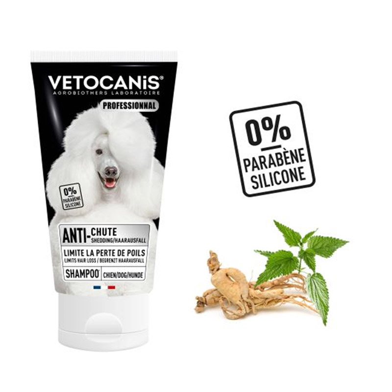 Formulated with stinging nettle and with ginseng, the anti-shedding shampoo revitalizes the roots and promotes regrowth. Your dog will have a healthy, thicker, and shinier coat. The anti-shedding shampoo does not contain paraben or silicone, to be as kind as possible to your dog.