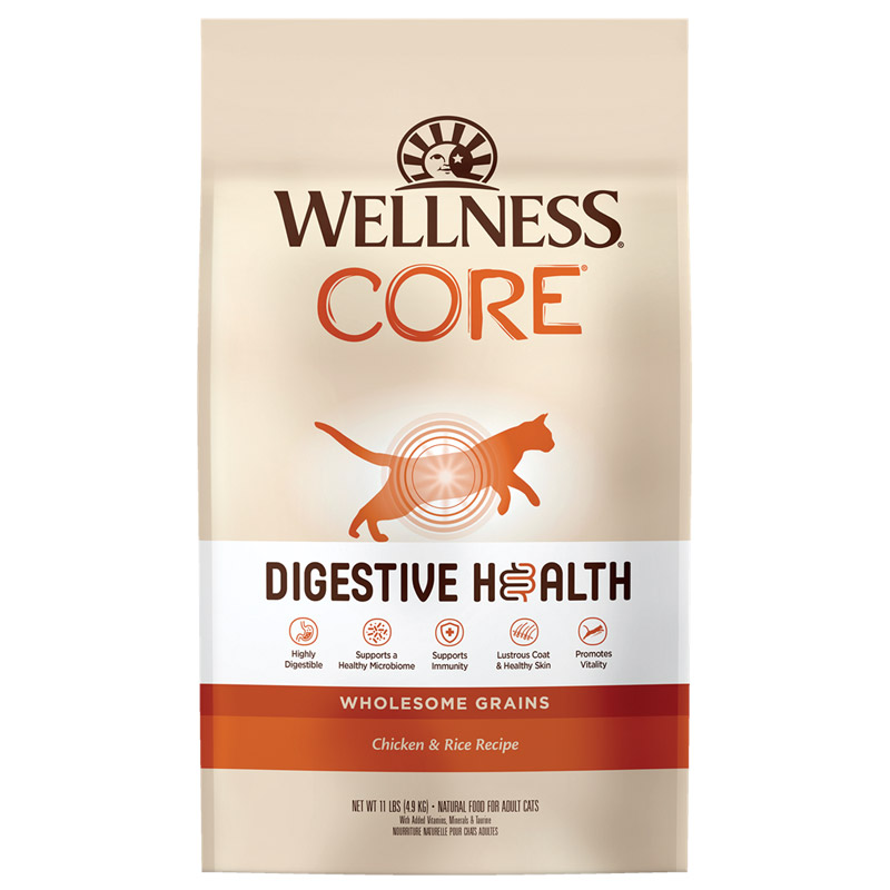 Wellbeing starts with a healthy gut. Wellness CORE Digestive Health is a highly digestible, probiotic-coated kibble crafted with digestive enzymes, a unique blend of prebiotic fibers, and guaranteed levels of probiotics to support digestive health for wellbeing. Fuel your cat’s best life, starting with digestive health.