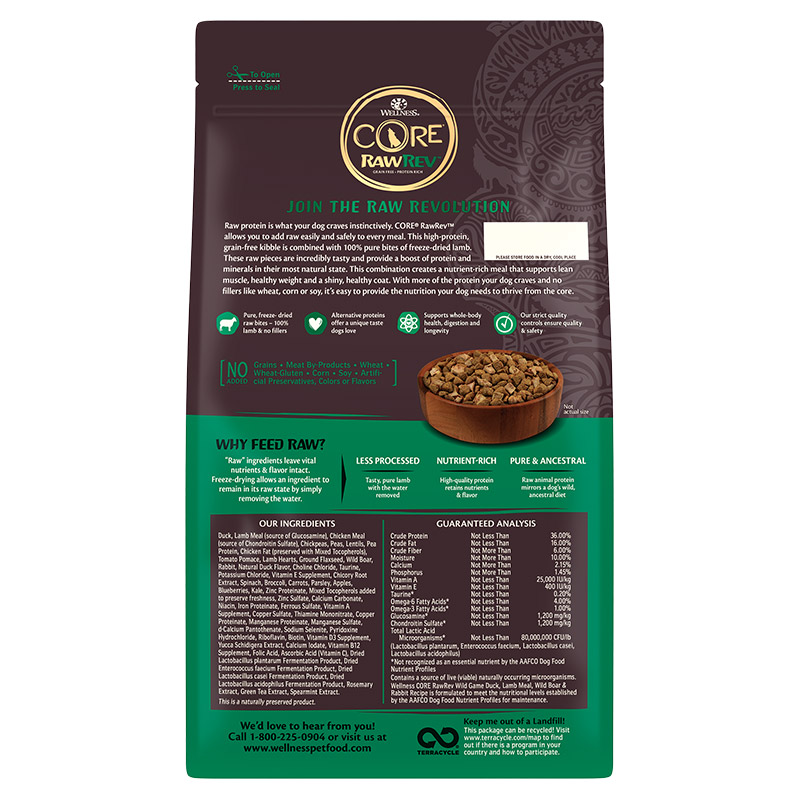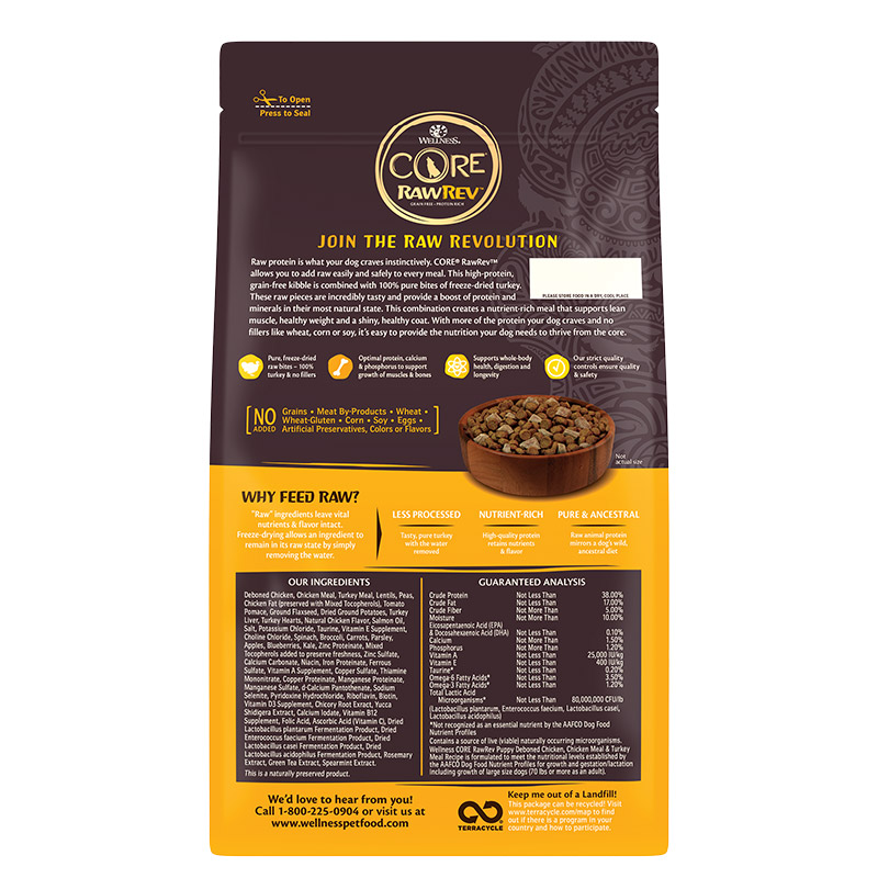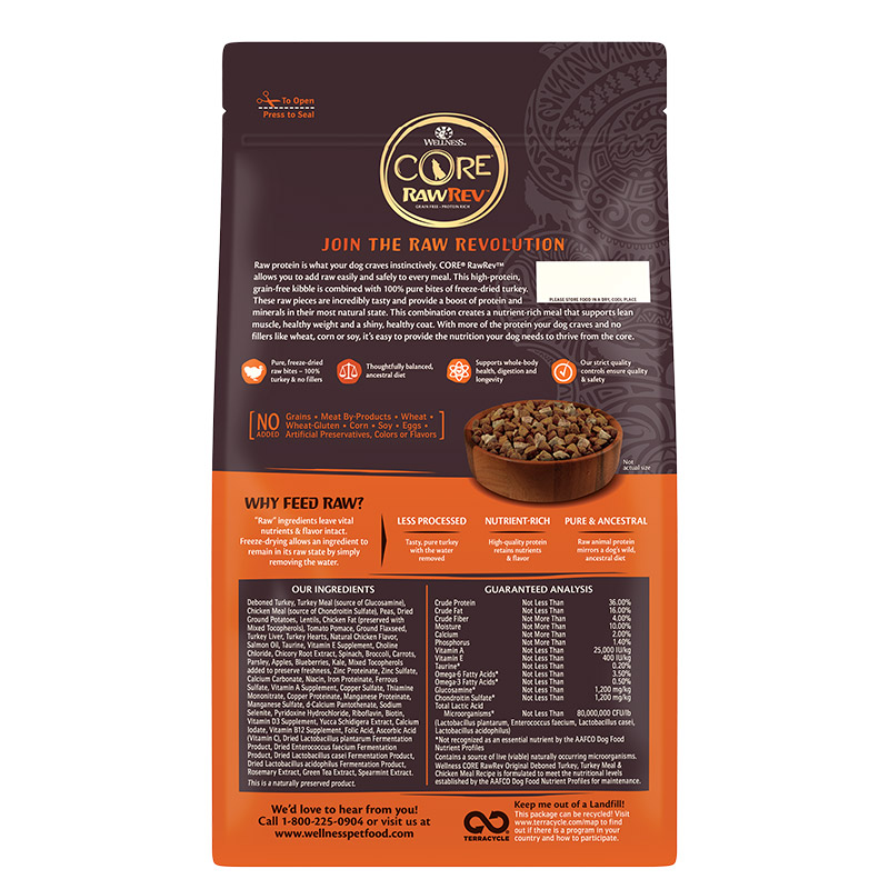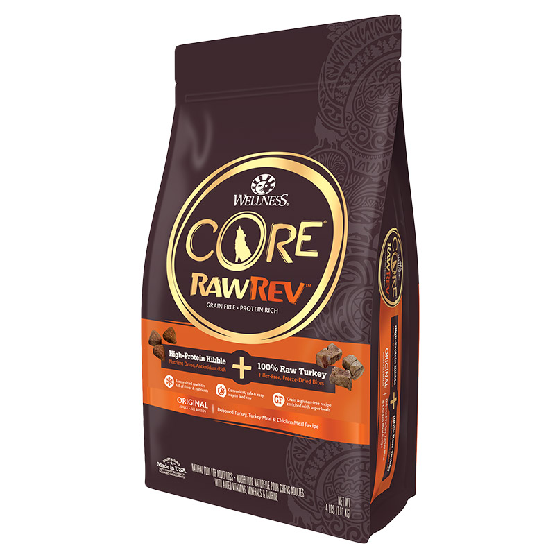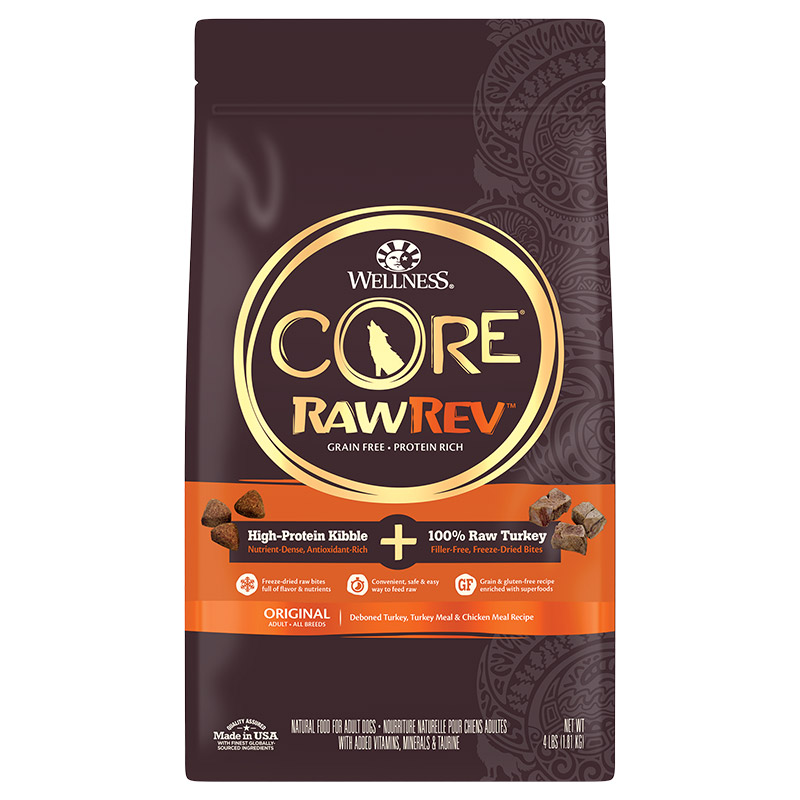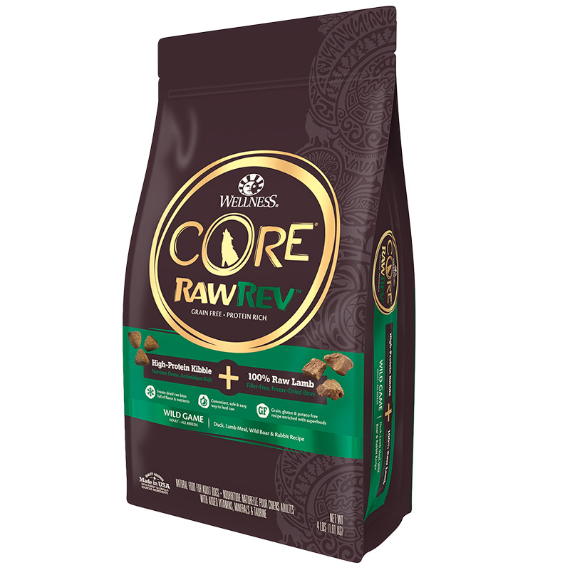 CORE RawRev allows you to add raw easily and safely to every meal. High-protein grain-free kibble is combined with 100% raw meat pieces to create a savoury, nutrient-rich meal packed with everything uour dog needs to thrive from the CORE.