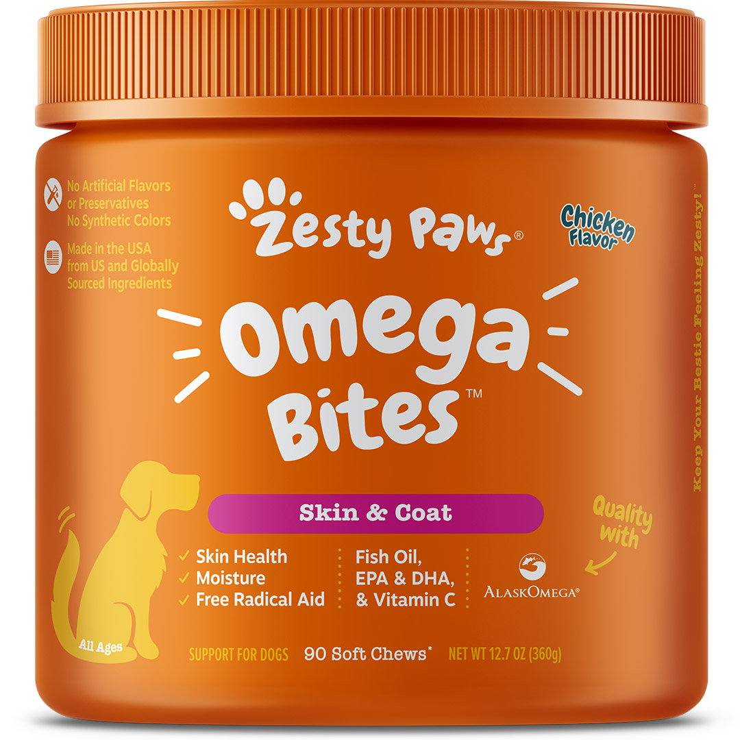 - Rich Omega-3 Support – Zesty Paws Omega Bites are delicious chewable supplement treats with Omega fatty acids (with EPA and DHA), vitamins, and nutrients to help dogs look and feel their best.