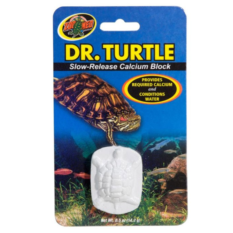 Dr. Turtle® is a slow-release calcium block that conditions water while providing a calcium supplement to promote healthy shell growth for aquatic turtles. To use, simply place the Dr. Turtle® Block in your turtles water supply